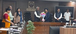 नाबार्ड द्वारा हुए हिंदी माह के समापन समारोह में प्रधान अतिथि वरिष्ठ साहित्यकार रावेल पुष्प का स्वागत करते हुए मुख्य महाप्रबंधक श्री पी के भारद्वाज तथा अन्य अधिकारी.