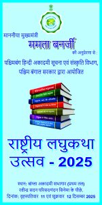 कोलकाता । पश्चिम बंगाल सरकार के सूचना एवं संस्कृति विभाग के अन्तर्गत पश्चिमबंग हिन्दी अकादमी आज से अपना तीसरा राष्ट्रीय लघुकथा उत्सव बांग्ला अकादमी के सभागार में आयोजित करने जा रही है, जिसके उद्घाटन सत्र में पधार रहे हैं बिहार हिंदी साहित्य सम्मेलन के अध्यक्ष डॉ अनिल सुलभ तथा डॉ बाबा साहेब अंबेडकर एजुकेशन यूनिवर्सिटी की कुलपति डॉ. सोमा बंदोपाध्याय। इसके अलावा भोपाल (मध्य प्रदेश) से विशिष्ट लघुकथाकार श्री गोकुल सोनी तथा रायपुर (छत्तीसगढ़) से श्री जयप्रकाश मानस जी भी पधार रहे हैं। अकादमी के सदस्य तथा वरिष्ठ साहित्यकार रावेल पुष्प के संयोजन में हो रहे इस राष्ट्रीय लघुकथा उत्सव की अध्यक्षता करेंगे अकादमी के अध्यक्ष श्री विवेक गुप्त। इसके साथ ही बंगाल के लघुकथाकार, समीक्षक भी शामिल होंगे तथा दूसरे दिन हिंदीतर भाषाओं में लिखी जा रही लघुकथाओं पर चर्चा होगी और कुछ चुनिंदा लघुकथाओं का अभिनात्मक पाठ भी होगा।