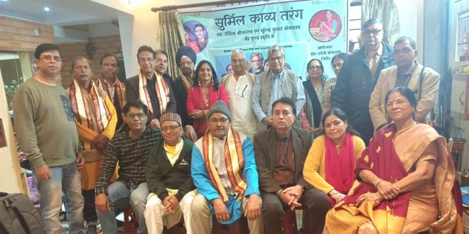 अब महज कुछ वर्षों में कोलकाता आकर बसने वाली उर्वशी श्रीवास्तव ने अपने पिता सुरेंद्र श्रीवास्तव तथा माता उर्मिला श्रीवास्तव की स्मृति में सुर्मिल काव्य तरंग की स्थापना की और मकर संक्रांति के पवित्र पर्व पर हाइलैंड पार्क सोसाइटी के एफिल टावर के अपने सुसज्जित फ्लैट में एक अंतरंग अनौपचारिक काव्य गोष्ठी आयोजित की। इस गोष्ठी में जहां एक ओर कविताएं,गीत, गजलों का दौर चल रहा था,वहीं सुस्वादु व्यंजनों का भी सभी लुत्फ़ उठा रहे थे।
