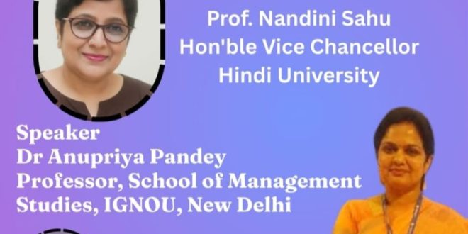 पश्चिम बंगाल, हिंदी विश्वविद्यालय द्वारा इस संगोष्ठी का आयोजन माननीय कुलपति प्रोफेसर नंदिनी साहू मैंम की अध्यक्षता में हुआ। जिसकी विशिष्ट वक्ता नई दिल्ली IGNOU की School of management की प्रोफेसर डॉ.अनुप्रिया पांडे जी थी, जिन्होंने अपने वक्तव्य में व्यवहार कौशल के महत्व को दर्शाते हुए यह बतलाया की कैसे औद्योगिक संस्थान गतिशील है, और वे न केवल तकनीकी कौशल चाहते हैं बल्कि सॉफ्ट स्किल और संचार कौशल पर भी जोर देते हैं।