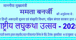 कोलकाता में आज से शुरू होगा राष्ट्रीय लघुकथा उत्सव- 2025. कोलकाता । पश्चिम बंगाल सरकार के सूचना एवं संस्कृति विभाग के अन्तर्गत पश्चिमबंग हिन्दी अकादमी आज से अपना तीसरा राष्ट्रीय लघुकथा उत्सव बांग्ला अकादमी के सभागार में आयोजित करने जा रही है, जिसके उद्घाटन सत्र में पधार रहे हैं बिहार …